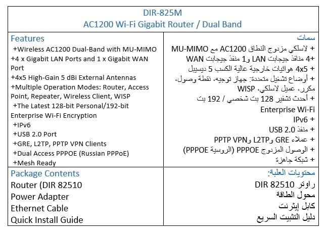 راوتر DIR-825M من D-LINK بقوة AC1200 WI-FI Gigabit Router / Dual Band
